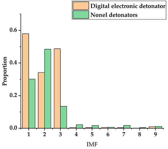 Bar graph showing the energy proportion of each IMF component for the digital electronic and nonel detonators.
