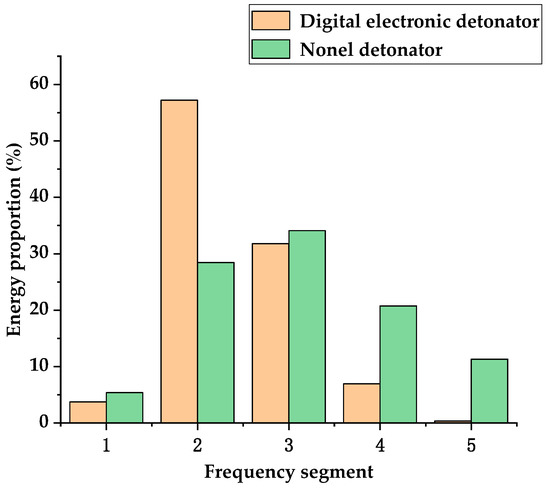 The energy proportion of digital electronic and nonel detonators in each frequency band.