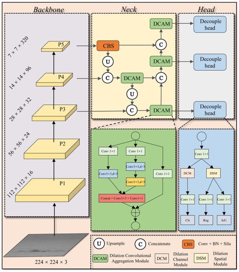 As lightweight models are widely proposed, such as SqueezeNet [32], MobileNet series [33,34,35], ShuffleNet series [36,37], EfficientNet series [38,39], ghostNet [40], MnasNet [41], and PeleeNet [42], the structure of these lightweight models is often used as the backbone structure of the target detection network. In the feature fusion structure, structures such as Feature Pyramid Network (FPN) [43], Path Aggregation Network (PAN) [44], and Bidirectional Feature Pyramid Network (BiFPN) [45] are common. The head network in target detection usually refers to the network module used for target detection output, which is used to convert feature maps into detection results, including the position, category, and other attributes of the target. For example, the Decoupled Head structure is used in YOLOX [30]. However, these models are not lightweight enough for industrial production. They are still too costly; they must use hardware with large computing resources; they cannot always perform real-time detection; and some do not have an efficient network structure.