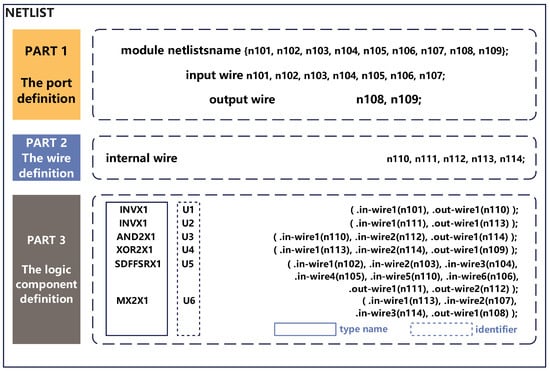 - Redefine the input netlist in the way needed for the two strategies, including the three parts: the port definition, the wire definition, and the logic component definition;