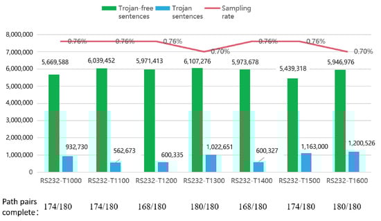 For deep learning, the size and quality of the dataset are two important fundamental prerequisites. Most of the existing methods use open-source data, such as the RS232-series provided by Trust-Hub, and it is worth mentioning that Liakos et al. [] proposed a new tool, GAINESIS, a WCGAN-based algorithm that synthesizes new samples for experiments. This is a convenient tool for models where it is difficult to extract a sufficient number of samples.