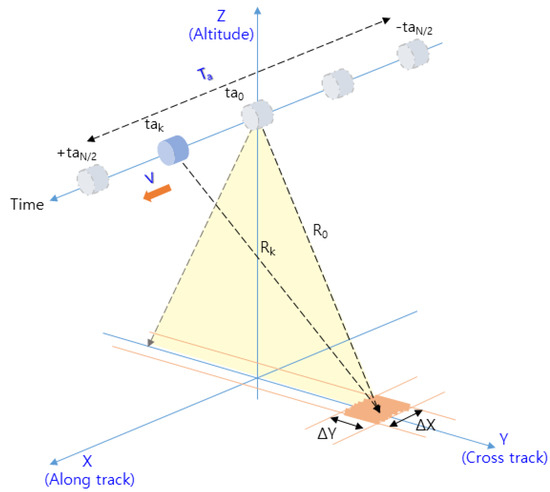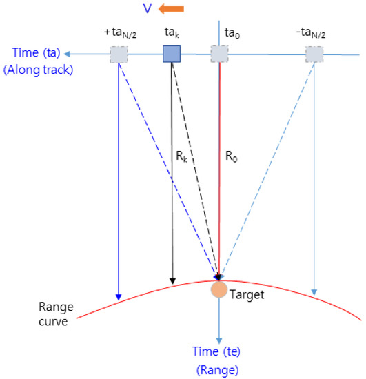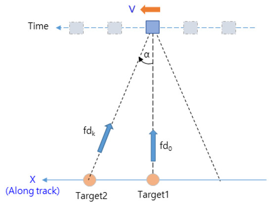 Figure 1 are acquired. Compared to the range Doppler algorithm, it is less computationally intensive, which has the advantage of enabling real-time processing in aircraft flying at high speeds. In this regard, the concept of the target’s Doppler frequencies for the flight path is shown in