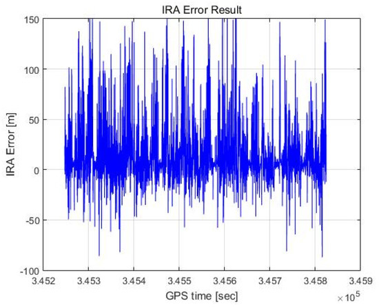 First, regarding the target identification process, unlike monopulse radar, which detects a single target, an IRA receives target signals from multiple reflective points on the terrain, meaning that the peak in the range spectrum may be the signal reflected from a single target with a large RCS but may also be superimposed signals from multiple targets with similar ranges and different angles. Therefore, for a single target signal, the phase error may be small, and the estimated angle may be accurate, but for multiple target signals, the phase error increases, resulting in a large angle error.