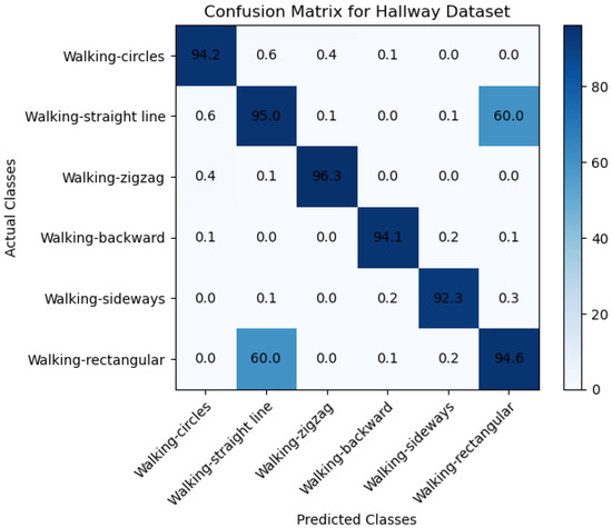 Confusion Matrix to evaluate the performance of the proposed model with the collected hallway dataset.