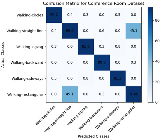 Confusion Matrix to evaluate the performance of the proposed model with the collected conference room dataset.