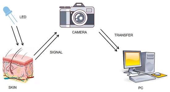 - Ting, W.; Vladimir, B.; Hans, J.S. Photoplethysmography imaging: A new noninvasive and noncontact method for mapping of the dermal perfusion changes. Proc. SPIE 2000, 4163, 62–70. Available online: https://www.spiedigitallibrary.org/conference-proceedings-of-spie/4163/1/Photoplethysmography-imaging--a-new-noninvasive-and-noncontact-method-for/10.1117/12.407646.short?SSO=1 (accessed on 22 November 2000). [CrossRef]