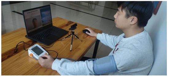 A non-invasive optical detection technique for physiological signal detection, called photoplethysmography (PPG) [], has emerged as a contact detection method that usually uses a photosensitive sensor to achieve physiological signal measurement. PPG technology has been widely used in the current medical detection systems. However, PPG technology has some shortcomings because it is still a contact detection method, for example, the subject may feel uncomfortable due to the continuous close contact with the instrument, and some subjects such as patients with large burns, patients with sensitive skin, and other special populations cannot pass the application of this technology. In addition, some equipment operation requirements are high, still need professional personnel to achieve the operation, and cannot meet the daily physiological monitoring needs. With the continuous improvement of people’s living standards, people hope to find a more convenient, convenient, and sustainable way to monitor blood pressure.