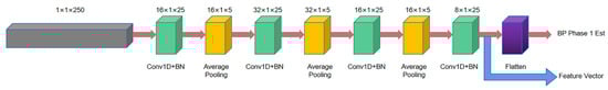 The first stage consists of two deep convolutional neural networks for performing the initial estimation of BP and extracting the feature vectors of systolic and diastolic BP. Each CNN contains four hidden convolutional layers and one Flatten layer (cf. Figure 11). The role of the Flatten layer is to transform the two-dimensional features into a one-dimensional sequence. The ReLU is used as the activation function. The output vector of the fourth convolutional layer containing 60 elements is used as is the extracted feature vector.