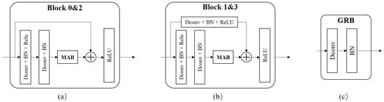 - We propose the MAB module, which selectively focused on informative features, allowing the model to allocate its resources more effectively and enhance its ability to distinguish relevant and irrelevant features. This improved the overall performance of the model. Additionally, we introduced the global residual block to address the issues of vanishing and exploding gradients, thereby improving the network’s generalization capability and robustness.