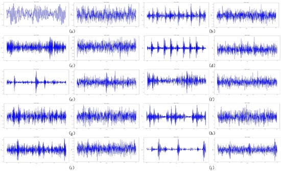 Finally, the frequency domain information within each time period is stitched together to obtain the time–frequency information of all the signals. The STFT formula is shown in Equation (3):