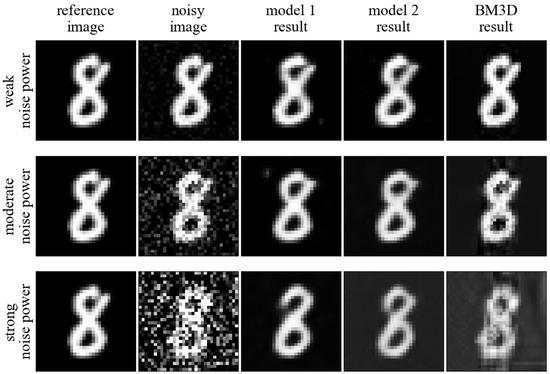These learning modes can be divided into three fundamentally different groups that allow us to check how the network will perform under any operating conditions. The first group can be considered modes 1 and 2—during learning, the network deals with images completely devoid of noise, thanks to which it can accurately assess what to change in its structure to obtain the expected Reference noise-free image. A network trained in this way is expected to show the highest filtering quality. Since in most practical applications it is not possible to acquire completely noise-free images, these modes should be treated rather as theoretical.