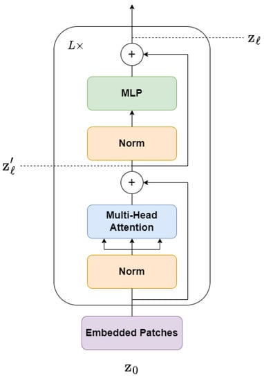 - Dosovitskiy, A.; Beyer, L.; Kolesnikov, A.; Weissenborn, D.; Zhai, X.; Unterthiner, T.; Dehghani, M.; Minderer, M.; Heigold, G.; Gelly, S.; et al. An image is worth 16 × 16 words: Transformers for image recognition at scale. arXiv 2020, arXiv:2010.11929. [Google Scholar]