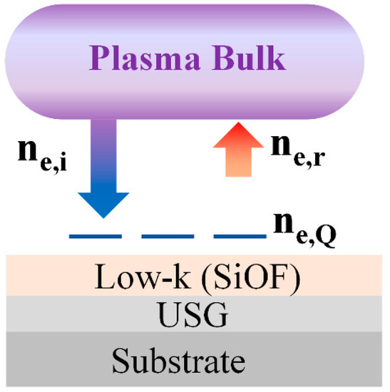 The scaling of semiconductors has led to the transformation of semiconductor devices, resulting in the development of technologies with shrinking device footprints, multilevel interconnecting stacks, and 3D architectures. However, this transformation has presented technical and productivity challenges in semiconductor manufacturing, such as gap-fill and leakage current [1]. To address these issues and improve productivity, the semiconductor industry has introduced inductively coupled plasma (ICP), which can generate high-density plasma (HDP) at low pressure (LP) [2,3]. Low-k dielectric materials have been applied into the back-end-of-line (BEOL) stage of semiconductor manufacturing to reduce parasitic capacitance. In addition, low-k dielectric materials have been used to reduce parasitic capacitance and improve signal propagation speed, and reduce signal delay, crosstalk between adjacent interconnects, and power consumption. Common low-k dielectric materials include organosilicate glass (OSG), carbon-doped oxide (CDO), and fluorine-doped silicon oxide (FSG), such as SiOF, which can be tailored to meet different manufacturing requirements.
