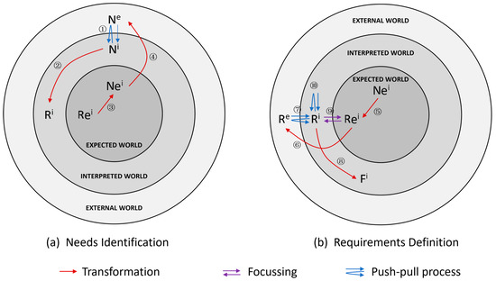 In this context, ‘Ne’ denotes ‘Needs in the External World’, while ‘Ni’ signifies ‘Needs in the Interpreted World’ and ‘Nei’ represents ‘Needs in the Expected World’. Similarly, ‘Re’ stands for ‘Requirements in the External World’, ‘Ri’ refers to ‘Requirements in the Interpreted World’, and ‘Rei’ corresponds to ‘Requirements in the Expected World’. Lastly, ‘Fi’ is indicative of ‘Functions in the Interpreted World’.