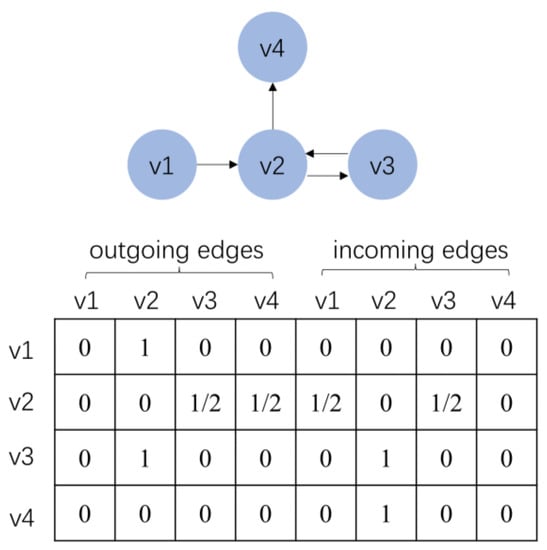 The user behavior sequences can be constructed as a sequence graph, and given a sequence , , where each item is considered as a node of the graph, and is an edge in the sequence graph, indicating that the user clicked on item and then clicks on item in sequence . Since several items may appear in the sequence repeatedly, we assign each edge a normalized weight, which is calculated as the occurrence of the edge divided by the outdegree of that edge’s start node. denotes the weighted connection of the incoming and outgoing edges of the session graph, and the corresponding graph and matrix for sequence are shown in Figure 3.