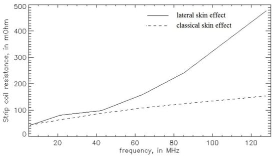 - Giovannetti, G.; Hartwig, V.; Landini, L.; Santarelli, M.F. Classical and Lateral Skin Effect Contributions Estimation in Strip MR Coils. Concepts Magn. Reson. Part B Magn. Reson. Eng. 2012, 41B, 57–61. [Google Scholar] [CrossRef]