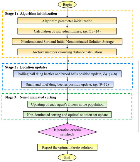 Flowchart of multi-objective dung beetle optimization algorithm.