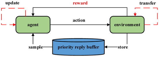 DRL is an artificial intelligence technique that utilizes trial–and–error iterations with the environment to acquire feedback information (reward) and optimize strategies, without relying on prior knowledge, as depicted in Figure 1.