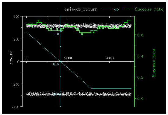 Each part was multiplied by its weight respectively to form the sum of rewards. We adjusted the weight value respectively to balance each part to achieve a better guidance effect. After conducting multiple trials, we determined that utilizing the values of k = −2, = 0.03, = 0.07 and b = −0.05 could facilitate rapid convergence of the model.