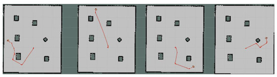 As shown in Figure 33, the robot in our real-world experimental environment can move from the initial point to the target point on command with no collision and a smooth path. After conducting multiple experiments in a realistic environment, utilizing the model trained by Method III to guide robot actions, it was demonstrated that the proposed improved deep reinforcement learning path planning algorithm can efficiently and accurately construct collision-free paths.