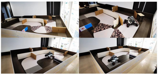 To verify the feasibility of the algorithm in a real environment, we use a real robot as shown in Figure 32 to execute the trained model-guided motion and we constructed a 5 m long and 5 m wide platform, equipped with randomly placed obstacles. After transferring the trained model from the simulation environment to the physical robot, we designed target point location information into the program. The robot (mobile robot) then executed corresponding actions based on instructions provided by the model. Since Method I of this paper is the most primitive method with only theoretical possibilities, the training process is very difficult and can easily become trapped in local optima, so only Method II and Method III are used for comparison in the real-world setting.