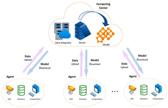 Federated learning is a distributed machine learning approach that allows participants to train models on their local devices without directly sharing raw data. It achieves collaborative learning among participants through model sharing and aggregation [26]. Federated learning offers capabilities in privacy protection, such as data decentralization, local data processing, encrypted communication, model aggregation, and differential privacy. Data decentralization refers to the fact that federated learning does not require uploading the raw dataset to a central server. Sensitive data on the client devices can be protected locally, avoiding privacy risks associated with centralizing the dataset. Local data processing means that data processing and model training are performed on the local devices in federated learning. Clients can control and protect their data locally and decide when to transmit the model to the central server. Encrypted communication means that federated learning utilizes encryption protocols for participants to exchange model updates, ensuring the confidentiality of data during the transmission of model updates [27]. Model aggregation refers to the process in federated learning where local models uploaded by clients to the central server are merged using aggregation algorithms to generate a global model. The aggregation process is performed in an encrypted state, ensuring that each client cannot access other models, apart from their local models, thus protecting data privacy among clients. Additionally, federated learning can employ differential privacy to protect client data. By introducing noise during the model training process, the individual contributions of personal data are hidden, reducing the risk of sensitive information leakage [28].