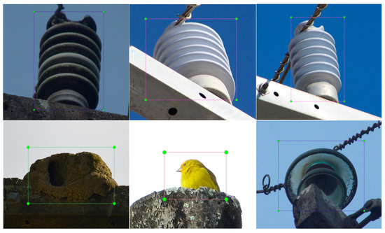 We used the LabelImg to complete the target labeling of each picture collected [32]. A total of five label categories of “defective insulator”, “nest”, “grass”, “bird”, and “normal insulator” were marked. The target annotation image is shown in Figure 4.