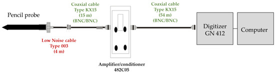 - a standard KX15 cable is added between the low-noise coaxial cable and the conditioner/amplifier, only for free-field experiments, and is also used between the conditioner and the digitizer. Its characteristic impedance is 50 Ω, and its linear capacitance is 96 pF/m.