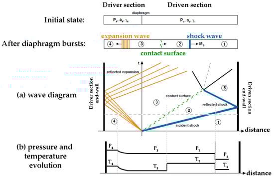 - Duff, R.E. Shock-Tube Performance at Low Initial Pressure. Phys. Fluids 1959, 2, 207–216. [Google Scholar] [CrossRef]
