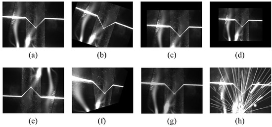 To improve the generalization ability of the model, we applied various data augmentation techniques during the training process, including rotation, translation, scaling, vertical flipping, affine transformation, and brightness adjustment. In addition, during actual welding processes, noise such as metal spatter, smoke, and arc light often appear concentrated and continuous over time. Traditional feature point detection models have weaker recognition capabilities for strong noise images and often fail in such environments, resulting in deviations in weld trajectory.