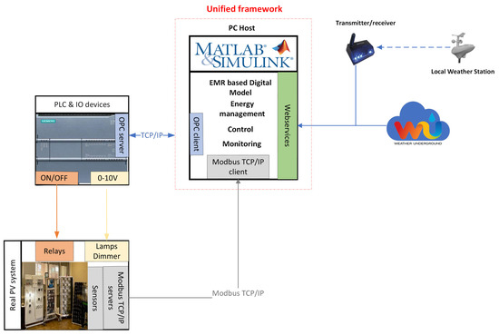 - An IoT architecture combining smart sensors for electrical data [41] and a weather station. As IoT, these devices use heterogeneous communication protocols [42], including Modbus TCP/IP, HTTP, and PROFINET;