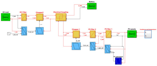 - Lhomme, W.; Delarue, P.; Giraud, F.; Lemaire-Semail, B.; Bouscayrol, A. Simulation of a Photovoltaic Conversion System using Energetic Macroscopic Representation. In Proceedings of the 15th International Power Electronics and Motion Control Conference (EPE/PEMC), Novi Sad, Serbia, 4–6 September 2012. [Google Scholar] [CrossRef]