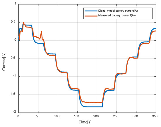 Measured and digital model battery currents are depicted in Figure 22. A positive current refers to a battery discharge, while a negative current refers to the charging phase.