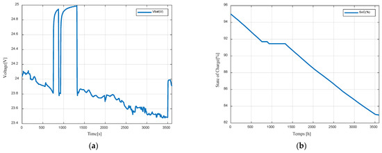 Figure 27a shows the battery voltage waveform, while Figure 27b displays the battery State of Charge. The battery primarily operates in discharging mode, except during periods when the system is not in operation (mode I).