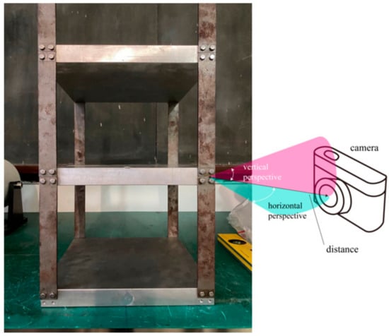 Section 4 explains that the proposed missing bolt detection method compared the target bounding box information of the detected target image and the reference image. If the target image and the reference image had the same angle and bolt coordinates, the detection accuracy of the missing bolt depended only on the bolt identification accuracy. Thus, this section first examines the bolt recognition capability of the deep learning model under different conditions. Then it verifies the effectiveness of the missing bolt detection method when the target image and the reference image have different angles and bolt coordinates. A bolted multi-story steel frame structure was constructed to test the model’s bolt identification capability and the method’s bolt absence detection capability. Figure 11 shows that the steel frame structure consisted of three layers of steel plates (250 mm × 250 mm × 25 mm), ten connecting steel pieces (175 × 25 × 10 mm), and several M4 hexagonal bolts. The front view showed 20 bolts. A camera (model: Canon 200D, parameters in Table 1) captured images of the bolt with a resolution of 3648 × 2736. YOLOv5s was chosen for experimental validation under different conditions based on its higher mAP. The study focused on verifying the model’s robustness for bolt identification detection under different environmental conditions and the effectiveness of the model-based missing bolt detection method. Images of the test samples were obtained by varying the shooting conditions, such as horizontal and vertical perspective angles, shooting distances, light intensities, and image resolutions. The test results will be analyzed in the following sections.