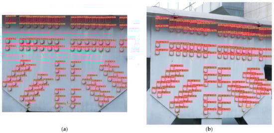The relative importance of recall on precision is greater than 0, where β > 1 affects recall more, and β < 1 affects precision more. Since the model detected missing bolts by comparing the difference between the number of bolts in the engineering plans and the number of identified bolts, the false detection of non-bolted objects as bolts made the number of identified bolts high and the number of missing bolts low, leading to safety hazards, so false detection should be avoided as much as possible. Therefore, the precision rate is more important. So let β = 0.5, which means an F0.5 score measures the model’s accuracy.
