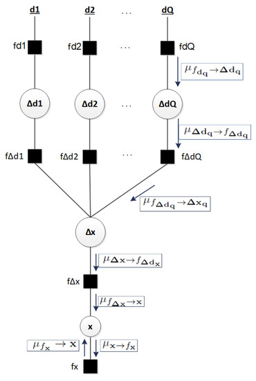 The sum-product algorithm applied to the factor graph allows the computation of marginal probabilities with the messages between the components of the factor graph [13,18]. The main rules of the sum-product algorithm are as follows: