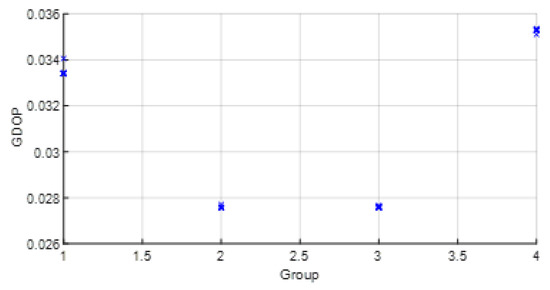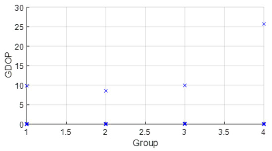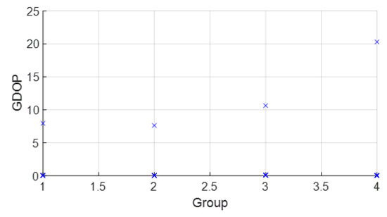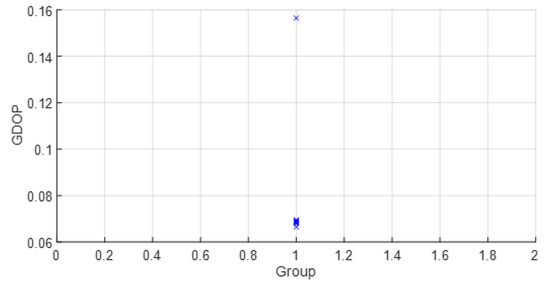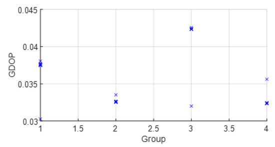 Thus, in (9), each solution from each group obtained with D ranges is weighted with its covariance to obtain the solution . This allows groups with better covariance results (related to WGDOP for the WLS case) to contribute more than the others to estimating the variable , and thus the position .