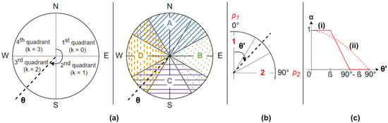 In order to provide a single formulation for all four possible quadrants shown in Figure 5a, we represent them in a single quadrant using the modulo operation as follows