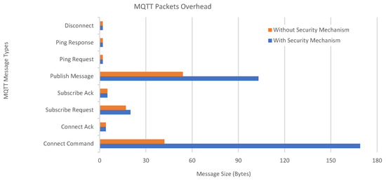 Our tests also revealed the effects and costs of applying the proposed security mechanism on top of an MQTT setup. The results show that there is an apparent tradeoff between the communication overhead and the security provided. The actual cost of implementing MARAS (in terms of data overhead) can be found using Table 10, where the three largest message types are compared. The other message types are not only much smaller but also not significantly affected by MARAS; therefore, they can safely be ignored.