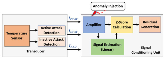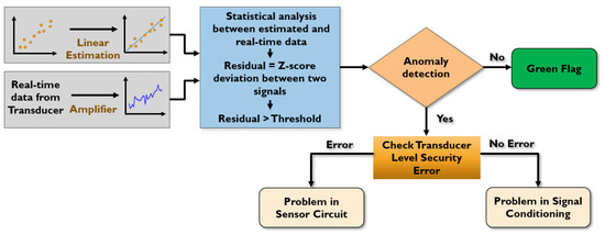 We leverage an estimation theory to determine the estimated signal from the sensor performance. Since the temperature readings from our sensors are linearly correlated, a linear estimation theory is applied to generate a linear model. The estimated sensor data and real-time sensor data are analyzed using a statistical method called Z-score. The Z-score deviation between the two signals generates a residual signal compared with a threshold value. A threshold with a certain acceptable range of inaccuracy (3-sigma deviation) is required to produce an error flag. We can determine the threshold by analyzing a different range of white noise amplitude. As a 3-sigma deviation covers 99.73% noise samples, our method considers almost all the noises in the signal without interrupting the sensor readings. If the residual signal exceeds the threshold, our method detects any anomalies in the sensor data. To isolate the faulty unit, we need to investigate the transducer level reliability from the variation of the current-based attack detection unit. If errors are found in the transducer unit, this unit must be isolated. Otherwise, the amplifiers in the signal conditioning unit are compromised and need to be replaced.