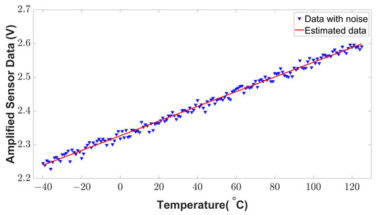 The readings from the temperature sensor transducer (PTAT or CTAT) are linear with respect to temperature. To fit the linear readings of sensor data, a contemporary least square method [27] is developed to perform the linear estimation. Assume the sensor data can be expressed as Equation (1).