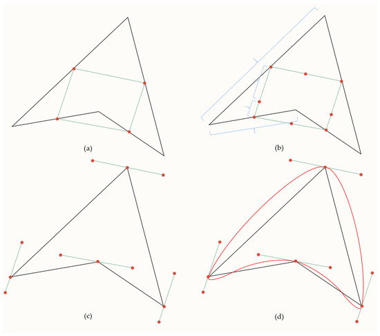 - Mineur, Y.; Lichah, T.; Castelain, J.M.; Giaume, H. A shape controled fitting method for Bézier curves. Comput. Aided Geom. Des. 1998, 15, 879–891. [Google Scholar] [CrossRef]