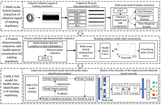 To address the above problems, the health status recognition method for rotating machinery based on multi-scale hybrid features and improved convolutional neural networks is proposed. The main contributions of this paper are summarized as follows: