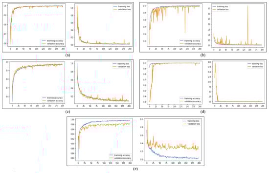 where M is the number of classes; y is the binary indicator if c is the correct prediction for observation o; and p is the predicted probability for the observation being of class c. During the fit of deep learning models, each deep learning model completes approximately 200 epochs, with a batch size of 32. Table 7 illustrates the configuration of the training parameters for each model used in the experiment.