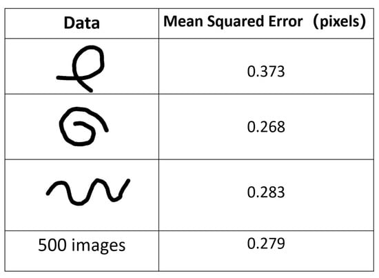 As Figure 8 demonstrates, our algorithm could extract the skeleton correctly from all the binary images. The error of the data in Figure 9 indicated that the shape of Figure 8A had a slightly larger error than the other shapes. The reason for this error difference was that the cross-section interfered with the edge-supervised searching process. Despite using an intersection detection algorithm, the algorithm still lost edge supervision near intersections. However, the algorithm was able to extract the skeleton structure and accurately determine the cross-section center, preserving the topological structure of the original object. The average error for all the simulation data was approximately pixels, demonstrating the effectiveness of our algorithm. The achieved sub-pixel accuracy demonstrated that our algorithm performed at the same level as other algorithms when applied to linear objects.