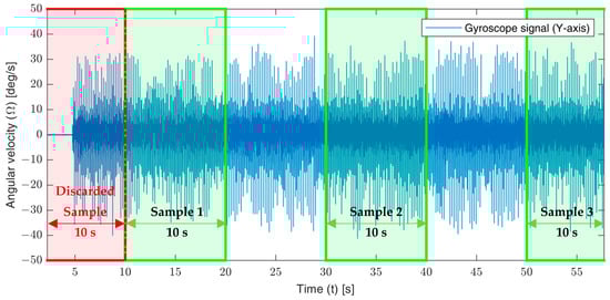 An illustration showing the extraction of the data samples from a recorded gyroscope signal.
