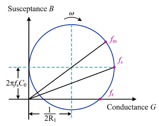 The variations of conductance G and susceptance B with frequency are represented as the admittance circle shown in Figure 2. There are three characteristic frequencies [,]. fs is the series resonance frequency, which is the frequency at which series resonance occurs in the dynamic branch, calculated as