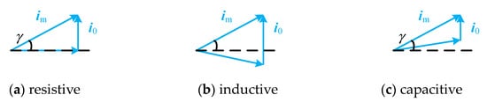 The three states of the PT equivalent circuit are analyzed, and the current vector relationship diagrams when the dynamic branches are resistive, inductive, and capacitive are shown in Figure 9.