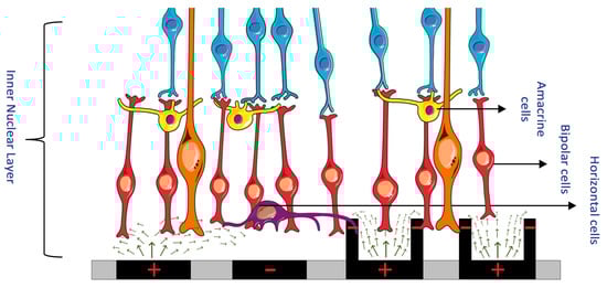 - Paknahad, J.; Kosta, P.; Bouteiller, J.-M.C.; Humayun, M.S.; Lazzi, G. Mechanisms Underlying Activation of Retinal Bipolar Cells through Targeted Electrical Stimulation: A Computational Study. J. Neural Eng. 2021, 18, 066034. [Google Scholar] [CrossRef]